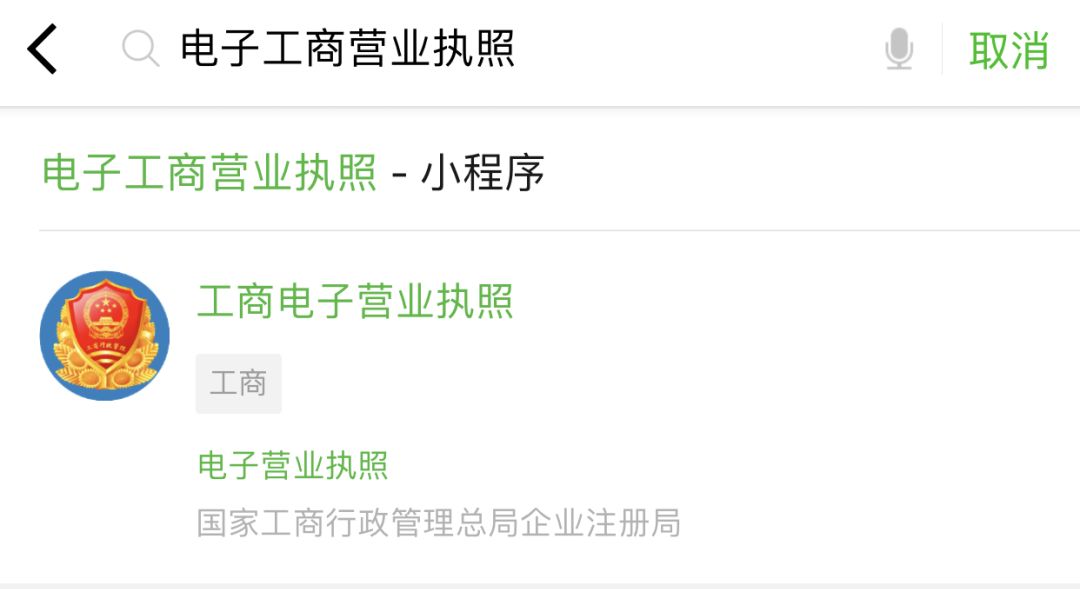 这就是微信电子营业执照小程序的界面了。
